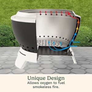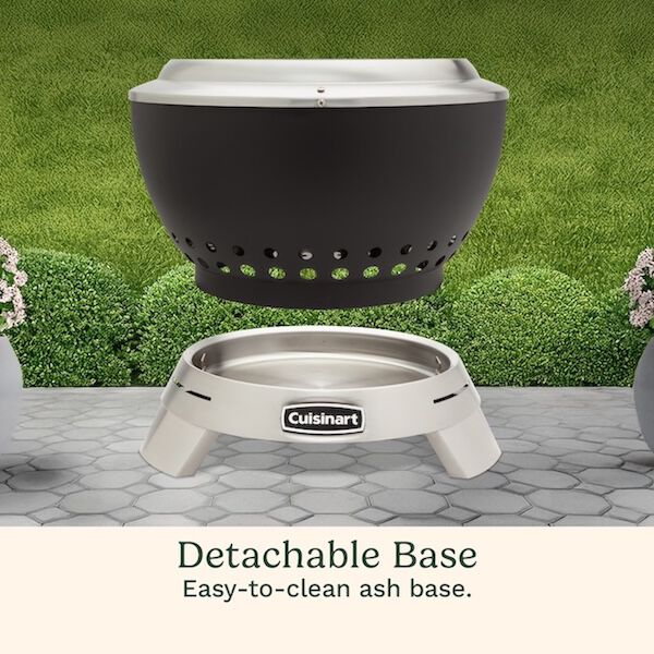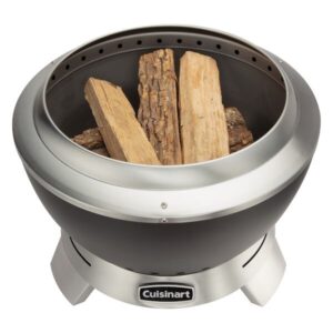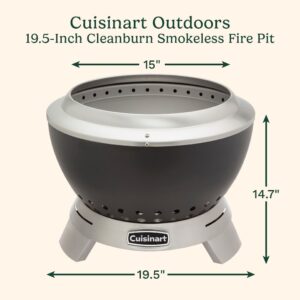 Enjoy the warmth of a fire without the smoke with the patented Cuisinart 19.5?? Cleanburn Smokeless Fire Pit. Say goodbye to shuffling seats to avoid smoke blowing in your face! Designed for enhanced airflow, this fire pit minimizes smoke and maximizes heat, creating a cozy centerpiece for your outdoor space. Our elevated base innovative curved double-wall design pulls cool air through bottom vents, feeding the fire and heating the air as it rises. This hot air escapes through top vents, burning off ash and smoke for a faster, cleaner, and smokeless fire experience. The durable carbon steel interior bowl ensures long-lasting performance, while the lightweight design and integrated handle make it easy to move. With quick assembly and an ash cleanup system, it??s the perfect choice for patios, backyards, and outdoor gatherings. Its sleek design, portability, and low-maintenance features make it a must-have for cozy evenings and lively gatherings.