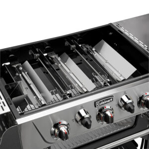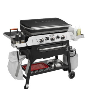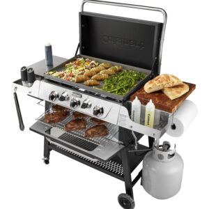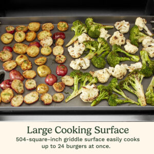 Elevate your outdoor cooking game with the 28″ Outdoor Griddler?, your new go-to for backyard meals. This 2-in-1 Griddle & Broiler combo gives you the best of both worlds??flat-top griddle cooking, plus high-heat, open-flame searing from the broiler for that perfect char. The griddle offers a spacious 504 sq. in. surface, fitting up to 24 burgers at once, so you??re always ready for the family or a crowd. Beneath the griddle, the broiler cabinet features a 3-level adjustable cooking rack and a viewing window, allowing you to sear, roast, toast, or melt with ease??bringing that signature flame-kissed taste to every dish. The Broiler Baffles system (patent-pending) directs heat downwards when closed, providing high-heat searing for steaks, roasting, melting cheese, and more. Open the Baffles to release heat for toasting, warming, or melting. Both the griddle and broiler share the same fuel source, maximizing efficiency with no extra fuel. Designed for ultimate convenience, the Griddler? includes integrated condiment caddies on the side shelves for easy access to sauces and spices, along with a paper towel holder and trash bag holder to streamline prep and cleanup.