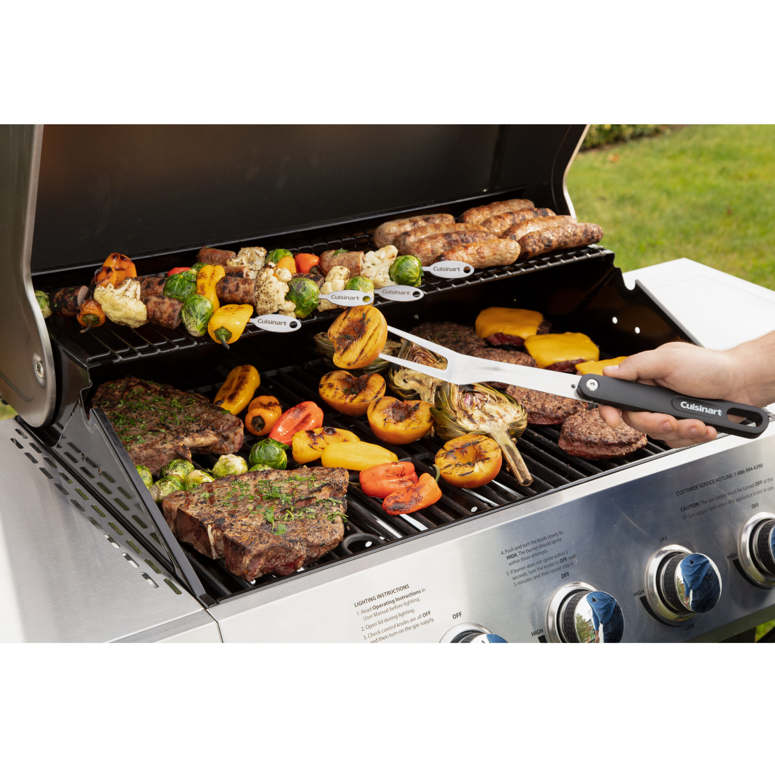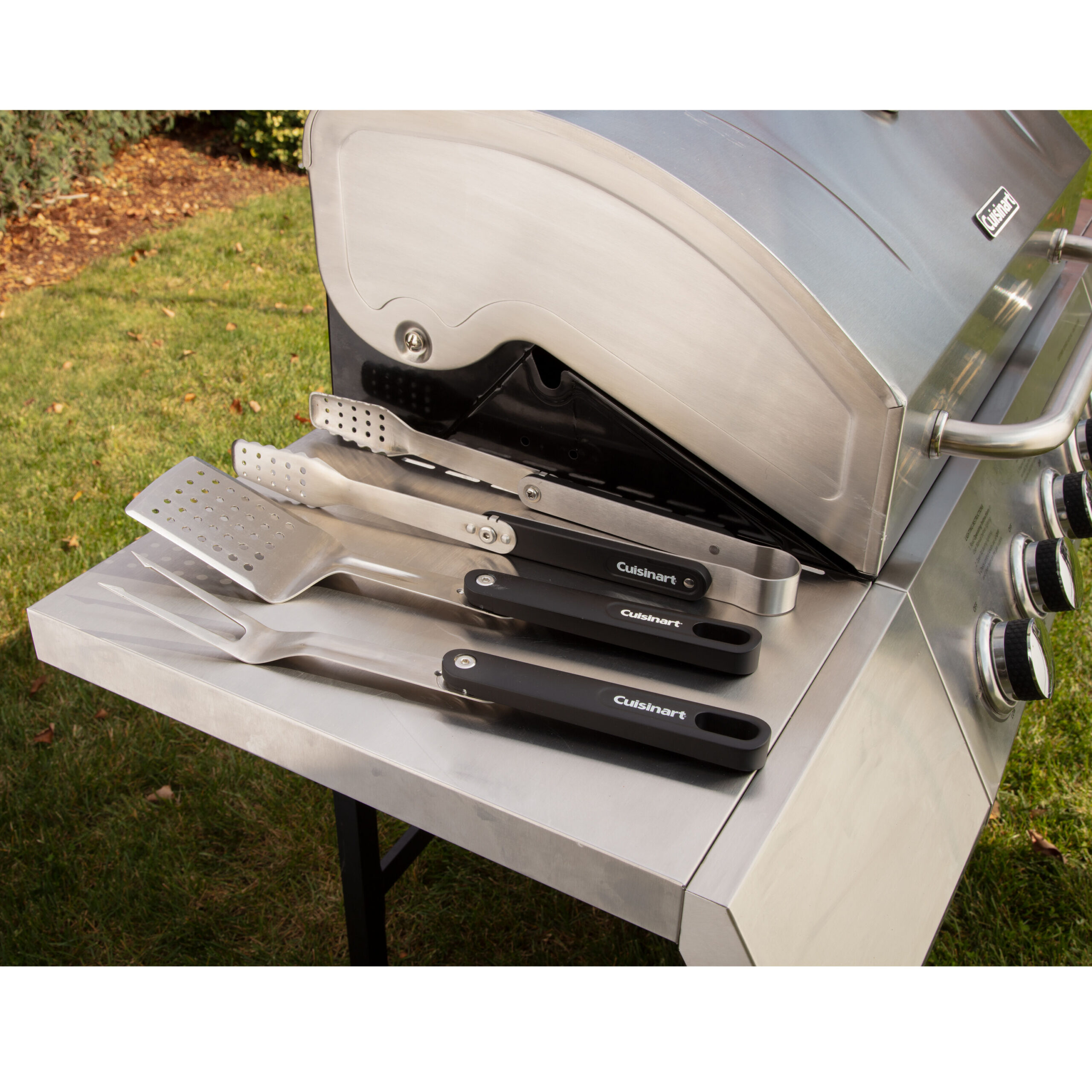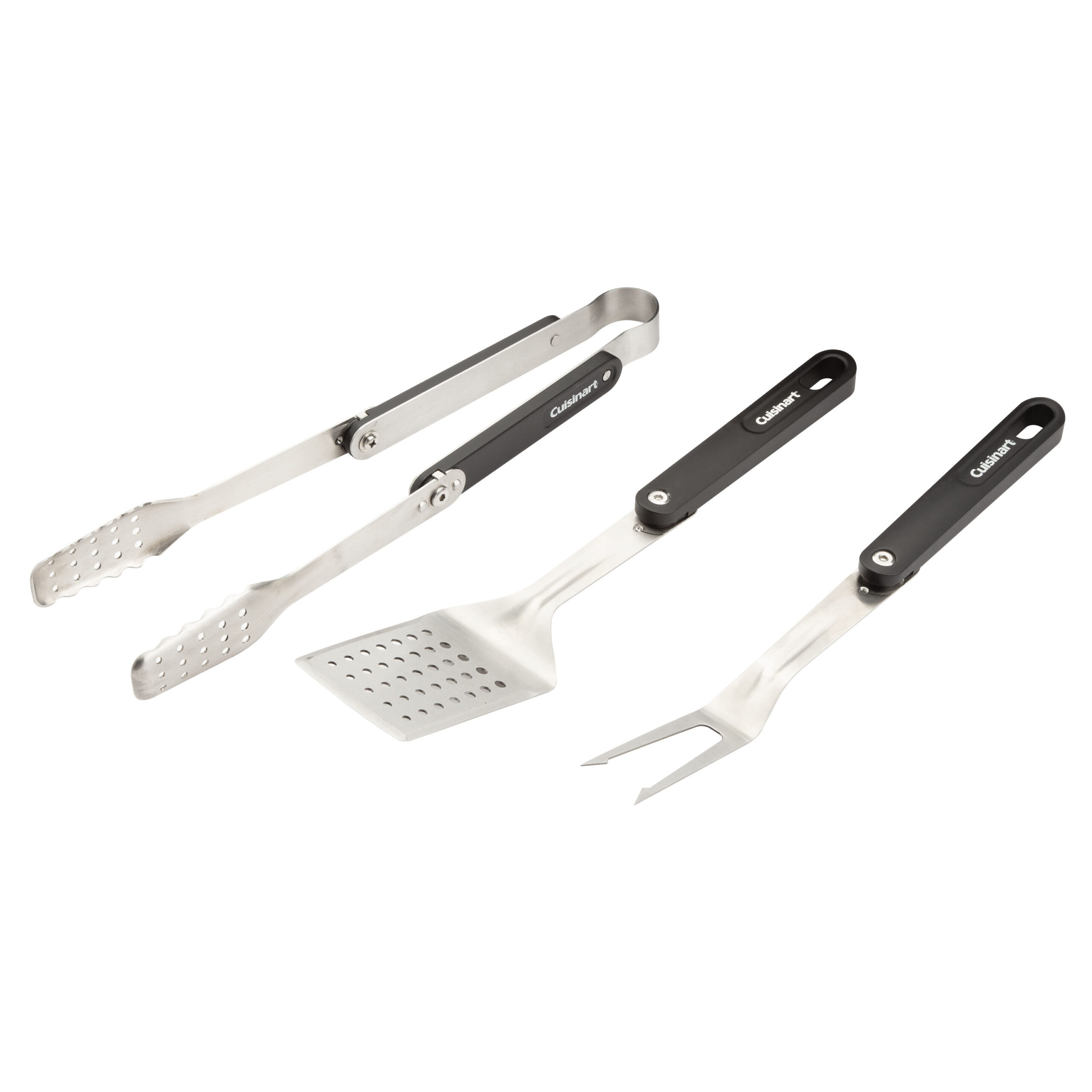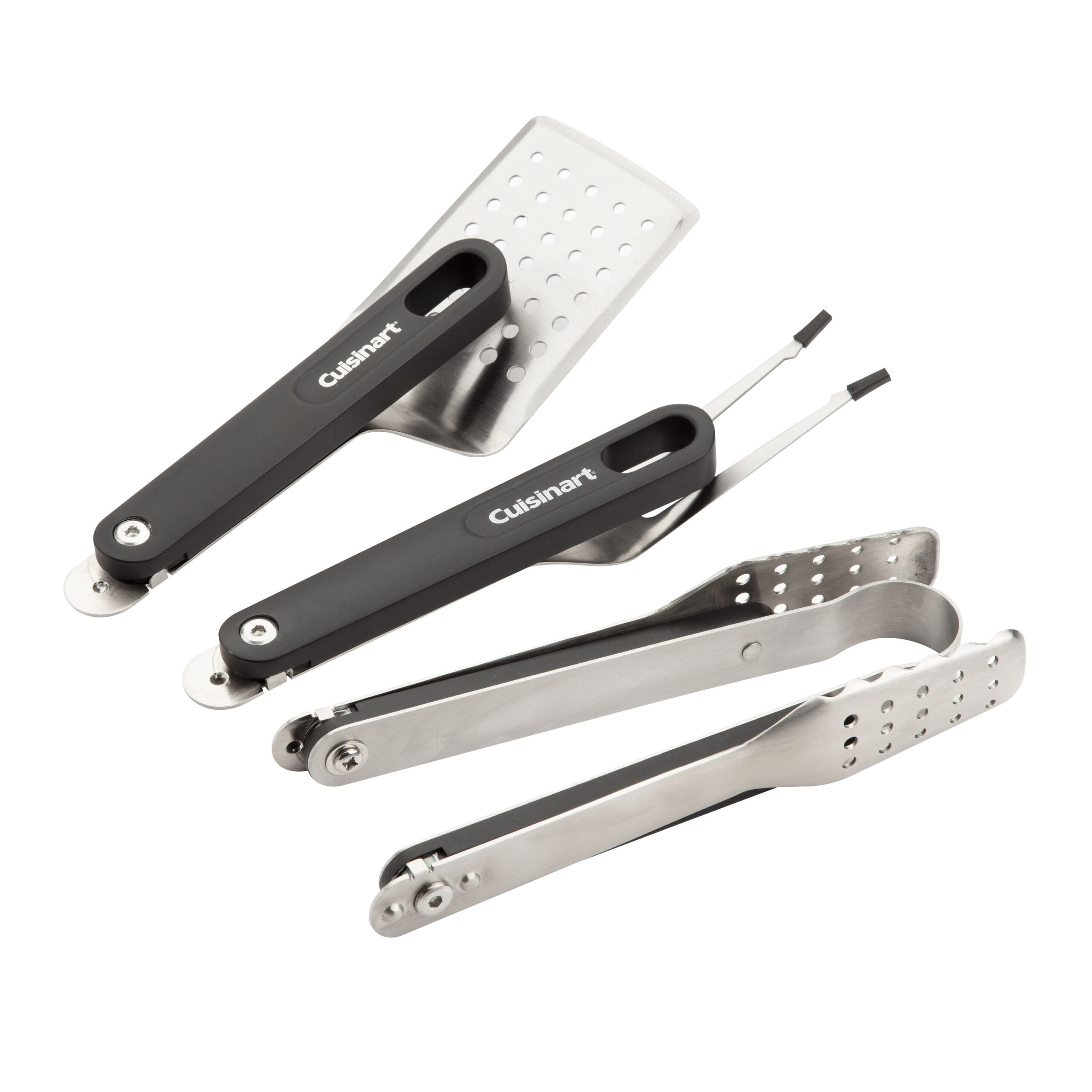The Cuisinart? 4 Piece Folding Grill Tool Set is the perfect set for camping, tailgating, or at home! This compact set includes a spatula, tongs, fork and carrying case. The tools feature an easy to u…