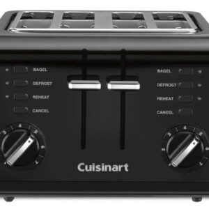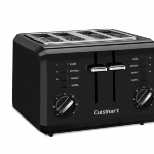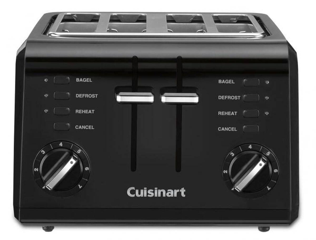 The classic toaster gets a modern update without sacrificing space thanks to the 4-Slice Compact Plastic Toaster by Cuisinart. The high-lift carriage works whether the toaster is placed sideways or fa…