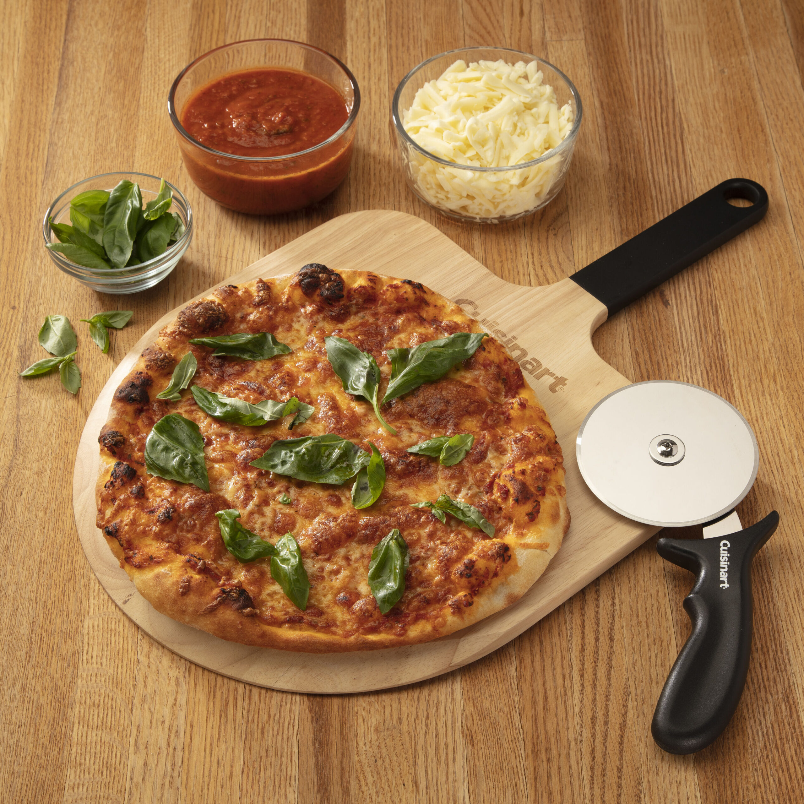 The Cuisinart 5 Piece Pizza Prep & Serve gives you everything you need to expertly prepare and serve mouth watering pizzas right at home! The set includes a 23.5 x 15.75″ non-stick silicone prep mat, a 12″ wooden pizza peel, pizza cutter, dough cutter, and dough roller. The non-stick silicone prep mat is ideal for preparing pizza dough and includes measurements to ensure you are stretching your dough out to the exact size you need for your oven. The wood pizza peel helps to easily add and remove pizzas from your oven and doubles as a cutting and serving board once your pies are done cooking. The dough cutter and dough roller help you prepare your pizza dough to the exact size and thick you need. The handheld pizza cutter features a 4″ stainless steel blade and a comfortable, ergonomic handle to easily slice through pizzas one after another.