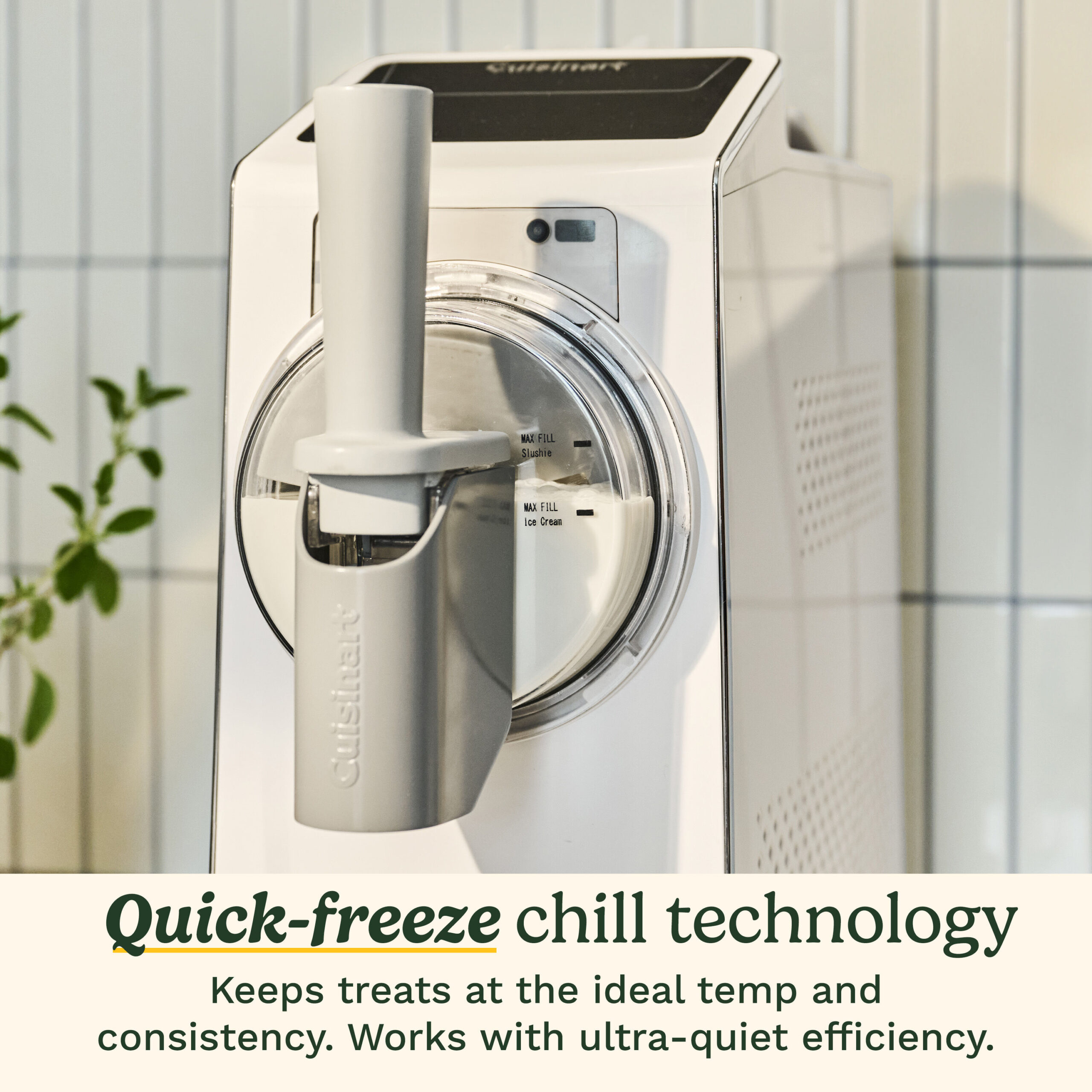 You can create a sweet array of frozen treats in as little as 15 minutes at the touch of a button. The multifaceted Cuisinart? 6-in-1 Slushy & Soft-Serve Maker lets you effortlessly create?soft-serve ice cream, sorbet, slushies, frapp??s, and frozen cocktails. This Slushy & Soft-Serve Maker features quick-freeze chill technology to keep treats cold, along with an ultra-quiet motor for low-noise operation. Smart Dispense Control allows for no-mess pours and smooth dispensing.