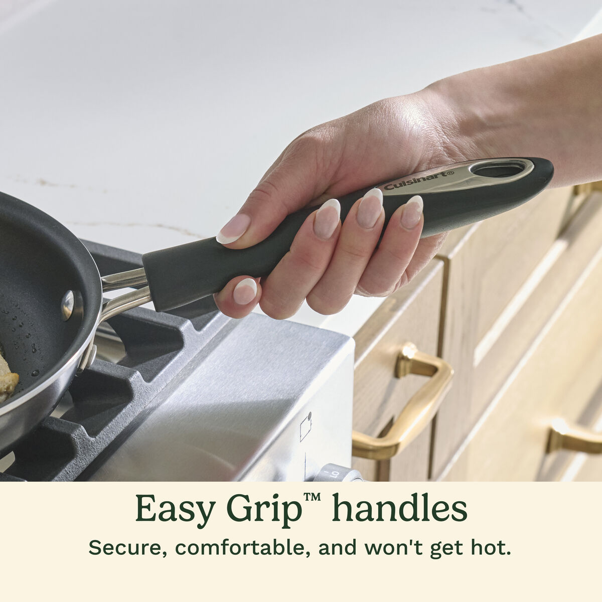 Prepare virtually anything with the Cuisinart? Advantage Nonstick 11 Piece Cookware collection. An elegant metallic exterior that complements any kitchen d??cor lets cooks simmer, saut??, fry, boil and braise in style. The pure aluminum core provides quick and even heat while the premium nonstick surface provides lasting food release and easy cleanup. Fantastic results with dishwasher safe convenience.