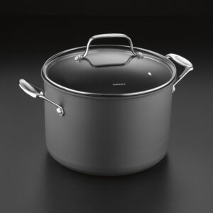 No other piece of cookware is as essential to slow and easy cooking as our 8 Quart Stockpot. The wide design of the stockpot maximizes the reduction of liquids, for more concentrated stocks and heartier, more flavorful soups and stews. Whether you’re preparing a stock for Proven?e vegetable soup, browning beef bones for beef stock, or simmering chili all day long until the flavors are blended to perfection, the stockpot guarantees delicious results with interior measurement markings for accurate cooking. Cuisinart? Chef’s Classic? Nonstick Hard Anodized Cookware features durable hard anodized construction for fast and even heating. We guarantee it with a lifetime warranty.