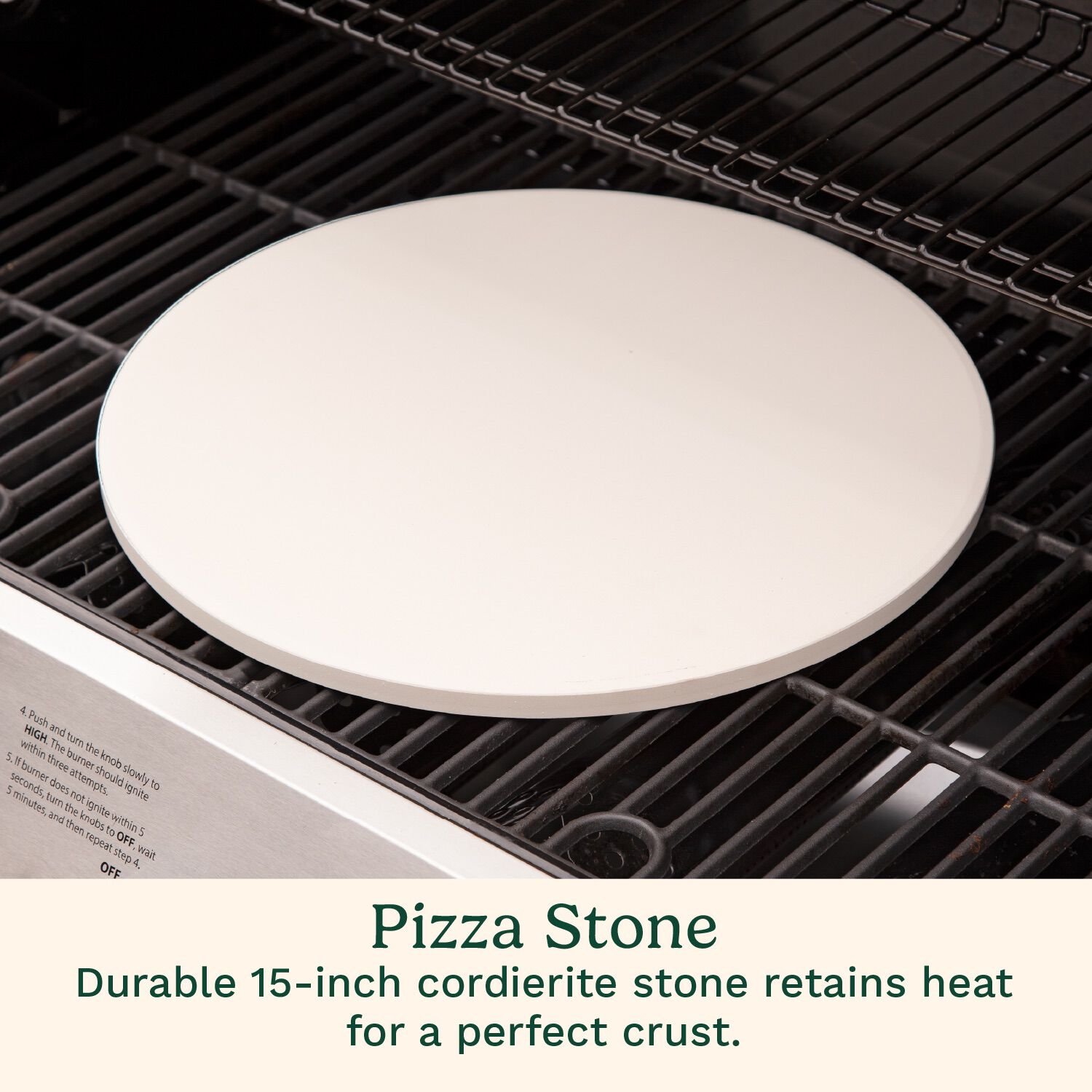 Transform your grill or oven into a pizzeria with the Cuisinart 3-Piece Deluxe Pizza Grilling Pack. This all-in-one pizza making kit includes a durable 15″ pizza stone, a 14″ lightweight aluminum pizza peel, and a wide quick-cut pizza cutter for easy slicing and serving. Pizza stone for grill or oven use is crafted from cordierite, known for excellent heat retention and even cooking. Whether you??re perfecting homemade dough or using your favorite frozen crust, this oven pizza stone helps you achieve that crispy, golden finish every time. Great for backyard pizza nights, it??s the perfect pizza stone set for any home chef.