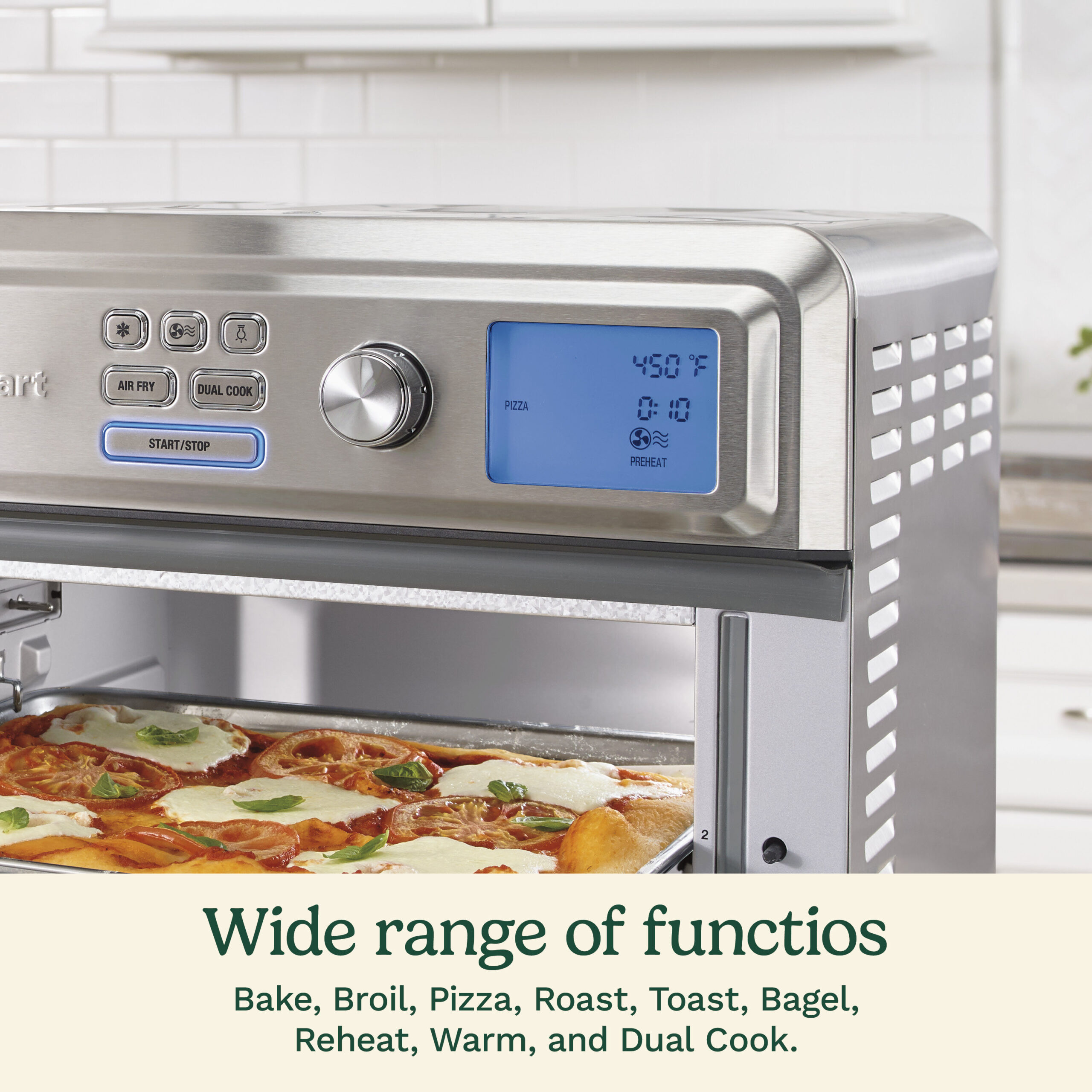 Cuisinart® makes air frying easier than ever, with presets to perfectly fry favorites like wings, fries, chicken nuggets, snacks and veggies. Frying with air instead of oil is delicious and guilt-free, and this large capacity oven fries up to 3 lb. at once. It also offers all the great features of a full-size toaster oven. And that’s not all! Unique to the Cuisinart® Digital Air Fryer Toaster Oven is a range of low temperatures that lets users proof dough, dehydrate foods and more, taking multi-functionality to a whole new level. With the large digital display and intuitive programming options, selecting presets, temperature, time, and function have never been easier.