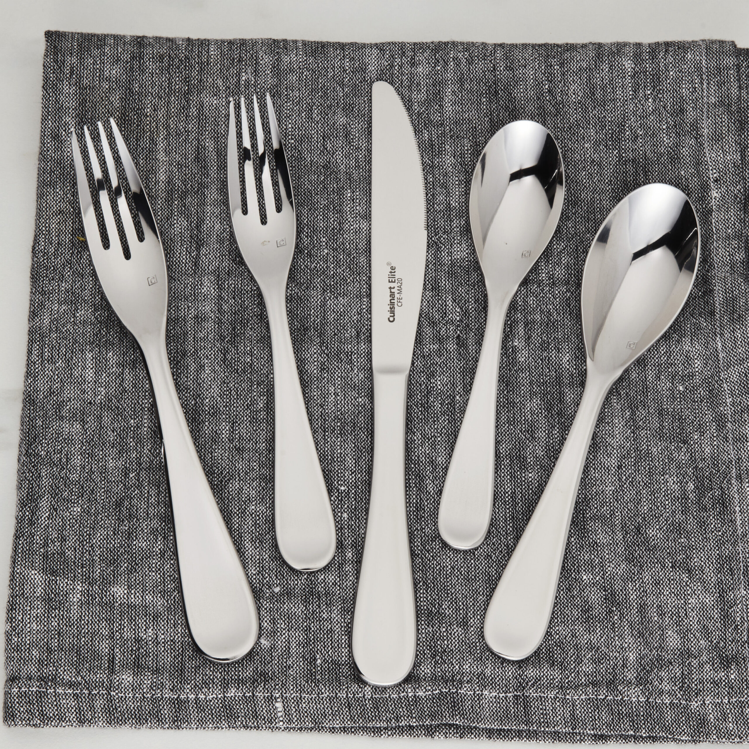 With Cuisinart? Flatware, Cuisinart? brings its distinguished reputation for quality and design leadership to the dining room. Handcrafted of the finest heavy-gauge stainless steel, these generously sized pieces are created with the utmost attention to detail. The finish is artfully blended. The craftsmanship is impeccable. And the styling evokes the same French spirit that infuses Cuisinart? Cookware, which we began making in France more than 35 years ago. Set your table with Cuisinart? Flatware and transform an ordinary meal into an extraordinary experience.