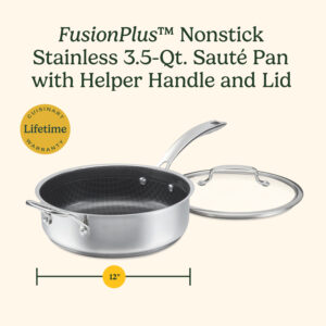 Elevate your everyday cooking with the Cuisinart? FusionPlus Nonstick Stainless Steel Saut?? Pan with Lid. The 3.5-qt. stainless steel pan features professional stainless steel construction and an alum…