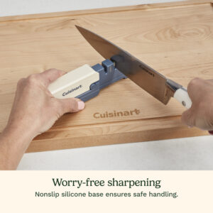 Keep your blades razor-sharp with this compact 3-stage sharpener, featuring coarse and fine slots for restoring and honing knives, plus a dedicated slot for shears. The locking handle ensures stability during use and slides together for easy storage, while the nonslip silicone base keeps everything safe and steady.