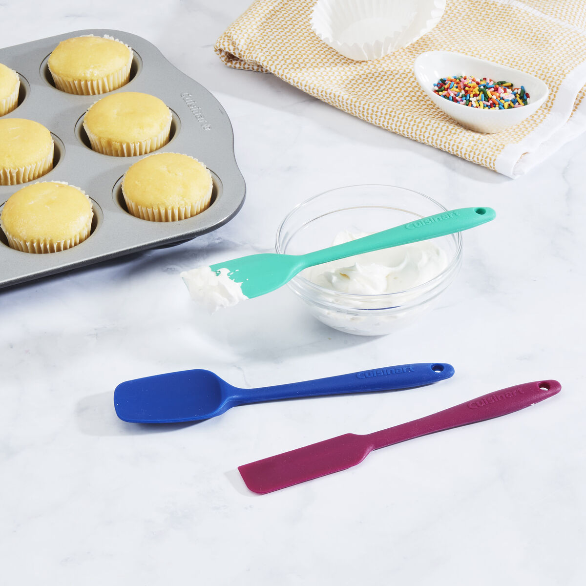 These Mini Spatulas will brighten up your kitchen and make baking fun again. Thanks to the professional silicone, these spatulas are nonstick and make scraping out every last bit of batter or any food easy.