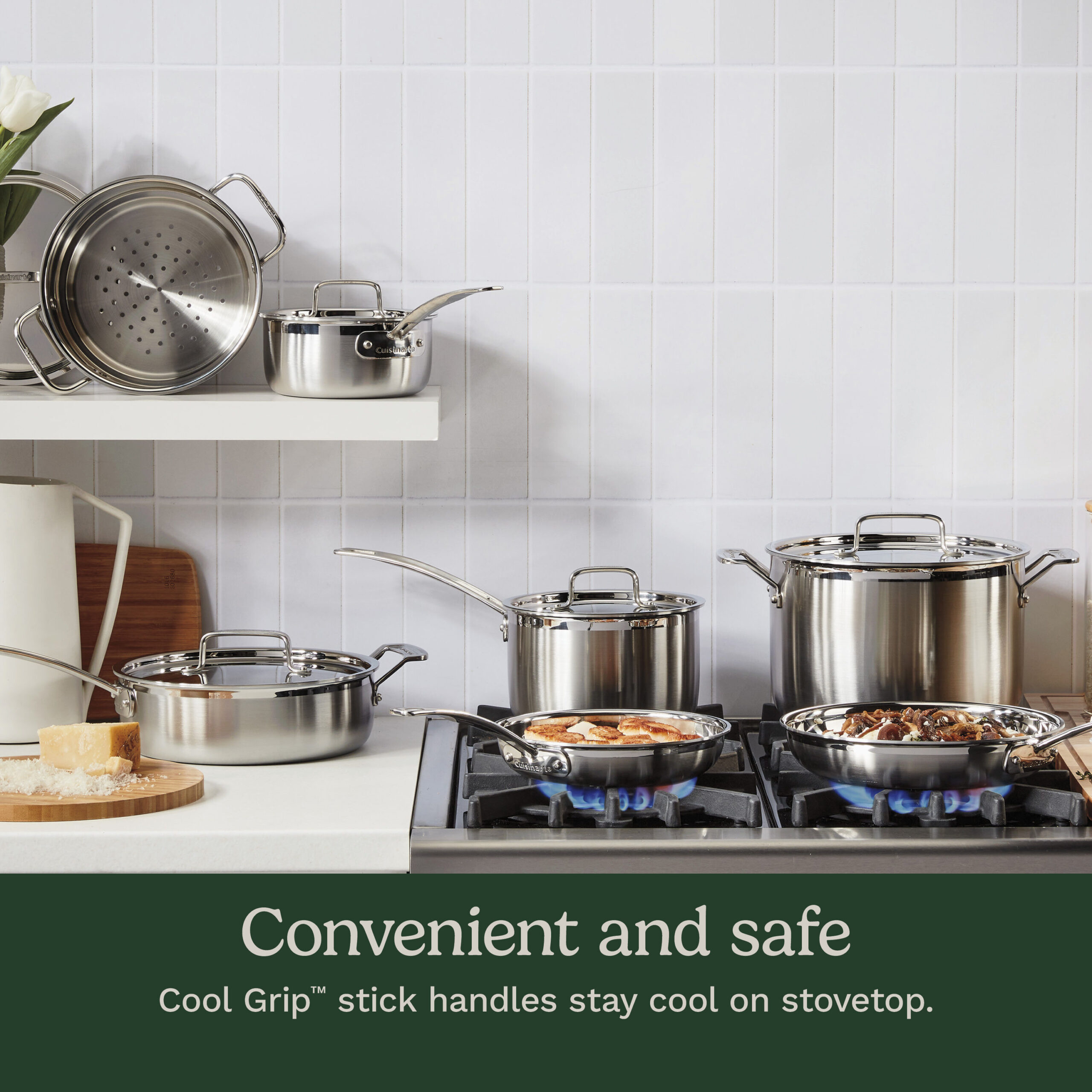 The kitchens of France were the inspiration behind the elegant Cuisinart? MultiClad Pro Stainless Cookware collection. Cuisinart? has included everything you need in this spectacular 12 piece set to perfectly perform all the basic cooking tasks, large or small. From reheating a single portion of soup to preparing appetizers, entrees and side dishes for the entire family, you’ll find every tool you need in this deluxe set.