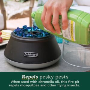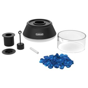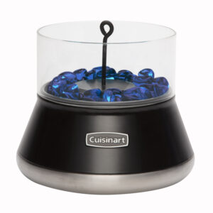 Light up nights without the bites with the Cuisinart 7.5″ Small Tabletop Fire Pit. Perfect for decks, balconies, or patio decor, this compact small fire pit brings the beauty of a dancing flame to spaces where a full-size fire pit won??t fit. The windproof glass and blue glass fire stones glow while keeping the flame steady. Fueled by bio-ethanol or citronella fuel, this small outdoor smokeless fire pit burns for up to 2?C3 hours without ash or the mess. Use it as a small patio fire pit for quiet nights or as a small tabletop fire pit to up the vibe for your backyard gatherings. Lightweight and easy to move, it??s the perfect solution for enjoying fire without the fuss.