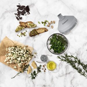 Custom-designed for use with the Cuisinart? 8-Speed Hand Mixer HM-8GR, this versatile attachment adds variety to family meals and desserts. Equipped with an ultra-sharp, stainless-steel reversible blade, it quickly and easily chops, grinds, and minces to maximize the mixer’s value and performance. From chopping carrots to mincing onions to grinding nuts and much more, this kitchen essential is a must for making delicious hor d’oeuvres, side dishes, soups, salads, and garnishes. Simple to assemble and clean, it’s the attachment home chefs turn to for endless menu options.