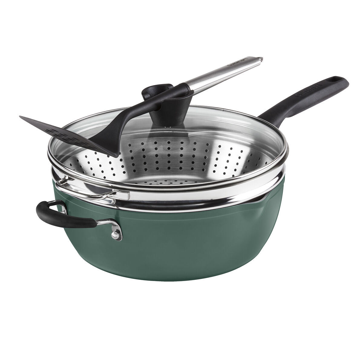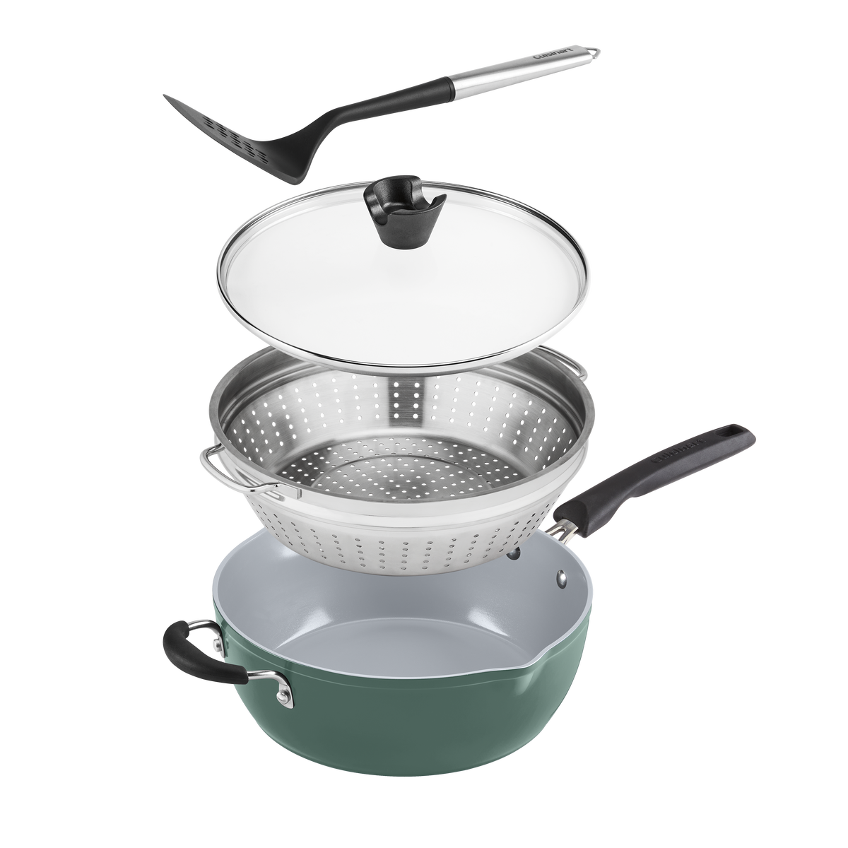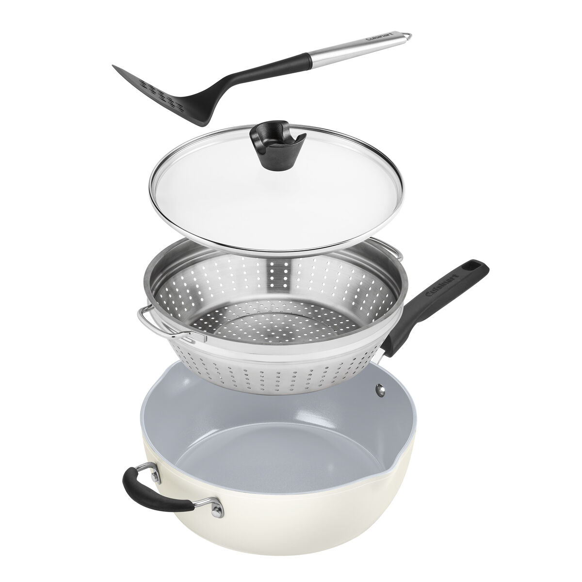 Meet the Preferred Pan ?C your ultimate culinary sidekick! Enhance your cooking with this versatile 4.5 Qt. capacity multi-purpose pan designed to perform at least 14 cooking tasks – poach, steam, strain, saut??, sear, fry, boil, simmer, sauce, braise, deglaze, brown, bake, roast. This pan features Cuisinart??s exclusive PURELYCERAMIC? nonstick interior – manufactured without PFAS, ensuring it is free of PFOS, PFOA, and petroleum – for easy cleanup and is dishwasher safe. Lifetime warranty.
