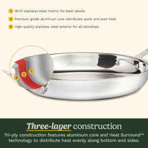 PureClad? Triple-Ply 12″ Stainless Steel Skillet with Helper Handle and Cover