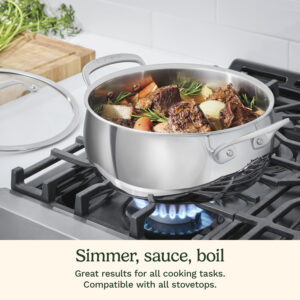 Crafted for both beauty and performance, Cuisinart??s 4.5 Qt. PureClad? Triple-Ply Stainless Steel Dutch Oven with Cover blends elegance with professional-grade quality. The luxurious, rounded full-bod…