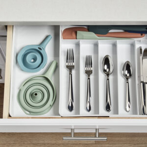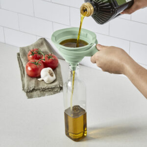 Upgrade your kitchen with Cuisinart??s 2-piece Collapsible Silicone Funnel Set, thoughtfully designed for mess-free convenience. Made from durable, food-grade silicone with a sturdy plastic arm to effortlessly transfer both wet and dry ingredients. These funnels feature a versatile swinging arm design that provides a secure grip and can also reinforce the funnel for added stability. The set includes two sizes (? cup and 1? cup) that fit a wide range of jars, bottles, and containers. Perfect for transferring dry ingredients, broths, sauces, juices, and more. These space-saving funnels collapse for easy storage and are dishwasher safe.